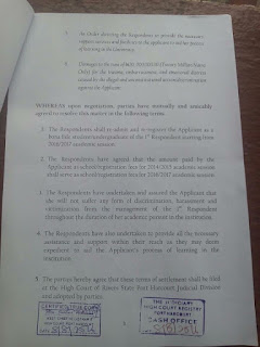 By now, some of readers must be waiting to know the latest news about Ms Jane and the Rivers State University of Science and Technology (RSUST)... Well, the good news is that Ms Jane Ottah finally got JUSTICE, the RSUST didn’t have any choice than to bow to the point of begging them to settle in an out of court agreement.